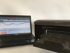 Der michelle© Messsystem Laptop mit spezieller Software zur Errechnung der optimalen Anpassung der Unterfederung, mit der Möglichkeit die Ergebnisse sofort zu drucken.